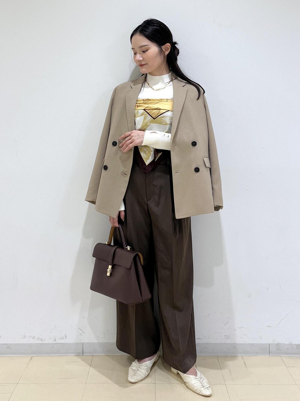 スカーフをビスチェ風にアレンジした、 秋のワントーンコーデです。 スカーフに合う色味を使って 全体をまとめてみました。 足元は白にして抜け感をプラス♩
