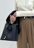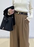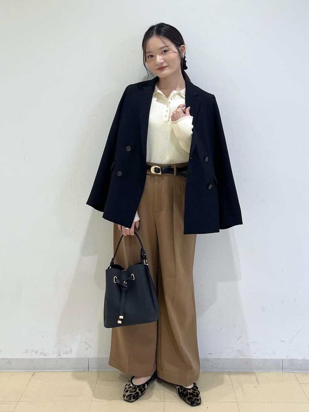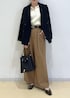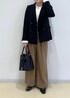 秋冬定番の、black×camelの組み合わせで 季節感ある通勤コーデを組んでみました♩ インナーには、大人気のダブルカラーニットをチョイス。 ぼんやりしないように黒のベルトで引き締めました。 バッグ、ジャケットも黒で統一感を。