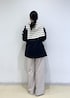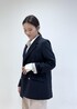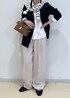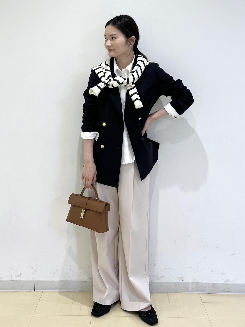 大人気の美easyシリーズ、コンフォートジャケットを軸に オフィスカジュアルコーデを組んでみました。 ボーダーのニットを肩掛けして遊び心をプラス♩ 髪はスッキリまとめてメリハリを付けました。