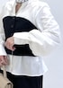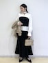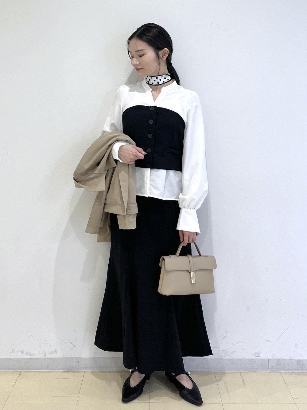 セットアップできちんと感を出しつつ、 首に巻いたスカーフで遊び心あるオフィスコーデにしてみました。 ドット柄が引き立つように、 敢えてベーシックカラーでまとめました♩