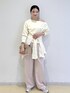 全体をニュアンスカラーでまとめて 柔らかい印象に仕上げました。 野暮ったくならないように、 上半身で肌見せをし、抜け感をプラス♩