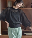 aika(LOWRYS FARM エスパル郡山)のカーディガン/ボレロ「シアーボリュームスリーブカーデロングスリーブ* 177921」を使ったコーディネート