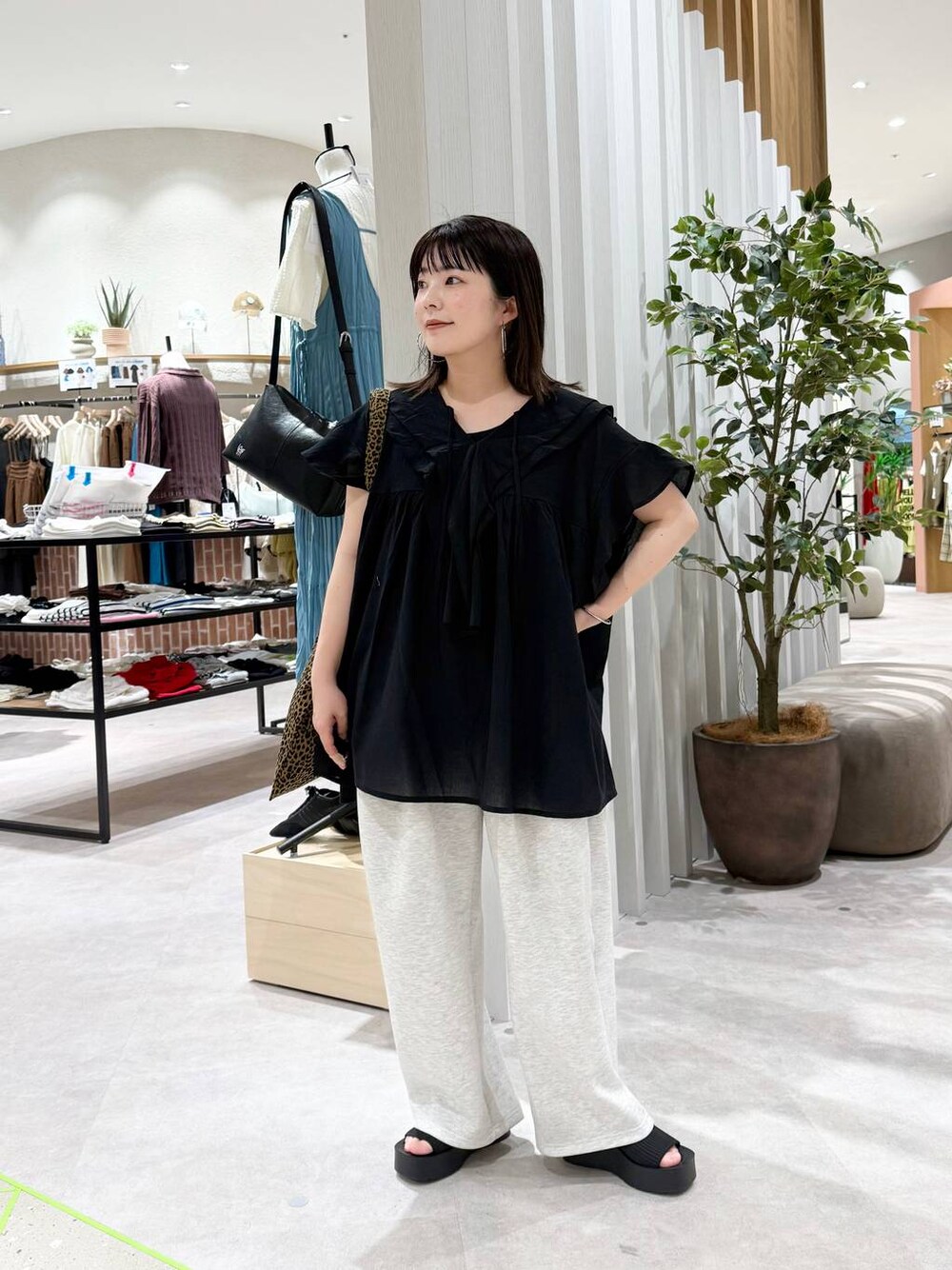 大人フェミニンコーデ♡ 【ブラウス】 ・夏でも涼しく着れるフリルデザインのブラウス♡ ・フレンチスリーブなので二の腕を華奢みえしてくれます ・147cmでお尻が隠れる着丈です 【スウェットパンツ】 ・ウエストゴムで楽ちんに着ていただけます◎ ・丸みのあるコクーンシルエットで可愛いです♡ ・伸縮性もあり楽ちんに着ていただけます! ・147cmでウエスト一つ曲げて着用しています!