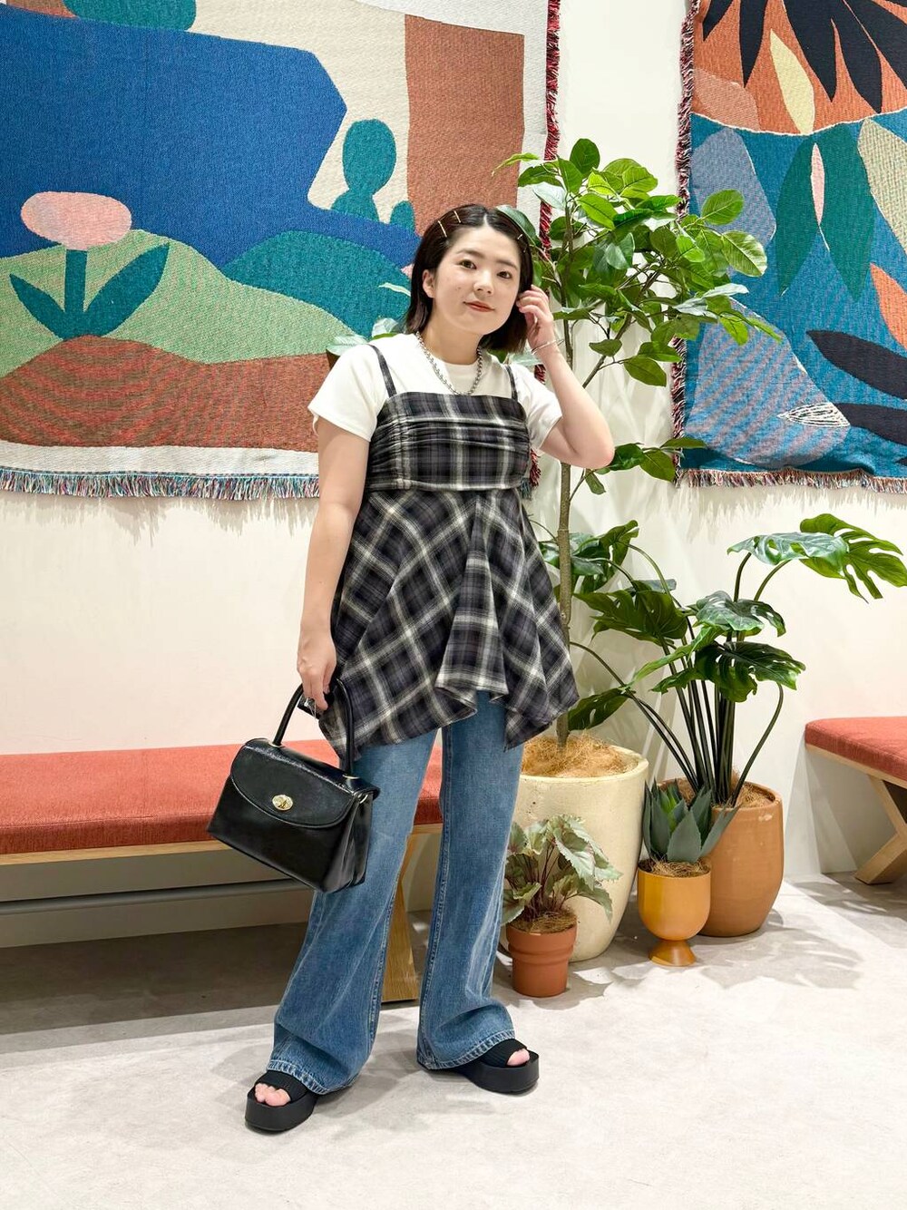 店頭でも大人気なチェックアイテム🖤 【チュニック】 ・チェック柄なので一枚でオシャレに着ていただけます ・肩紐で長さ調節可能です ・生地は柔らかく、夏から秋にかけて着ていただきやすい素材です 【デニム】 ・フレアシルエットで美脚効果抜群です ・柔らかい素材で履き心地抜群です! ・147cmでMサイズ着用してます