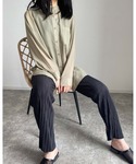 Tさんち。のミリタリージャケット「【WEB限定】テンセルVカラーシャツジャケット/ミリタリーノーカラージャケット/サファリジャケット」を使ったコーディネート