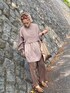◉トータル淡色コーデ ゴールドのバッグをポイントに。