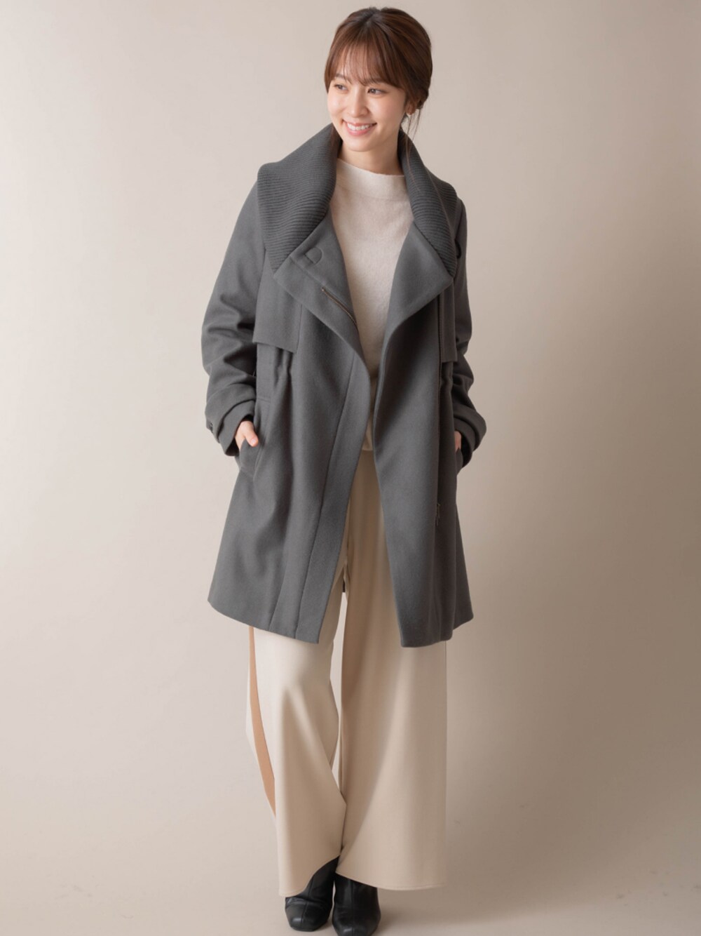 大きなリブカラーがポイント✨ すっきりめのシルエットで着膨れせず 前を開けて着用しても綺麗な衿シルエットを保てます✨