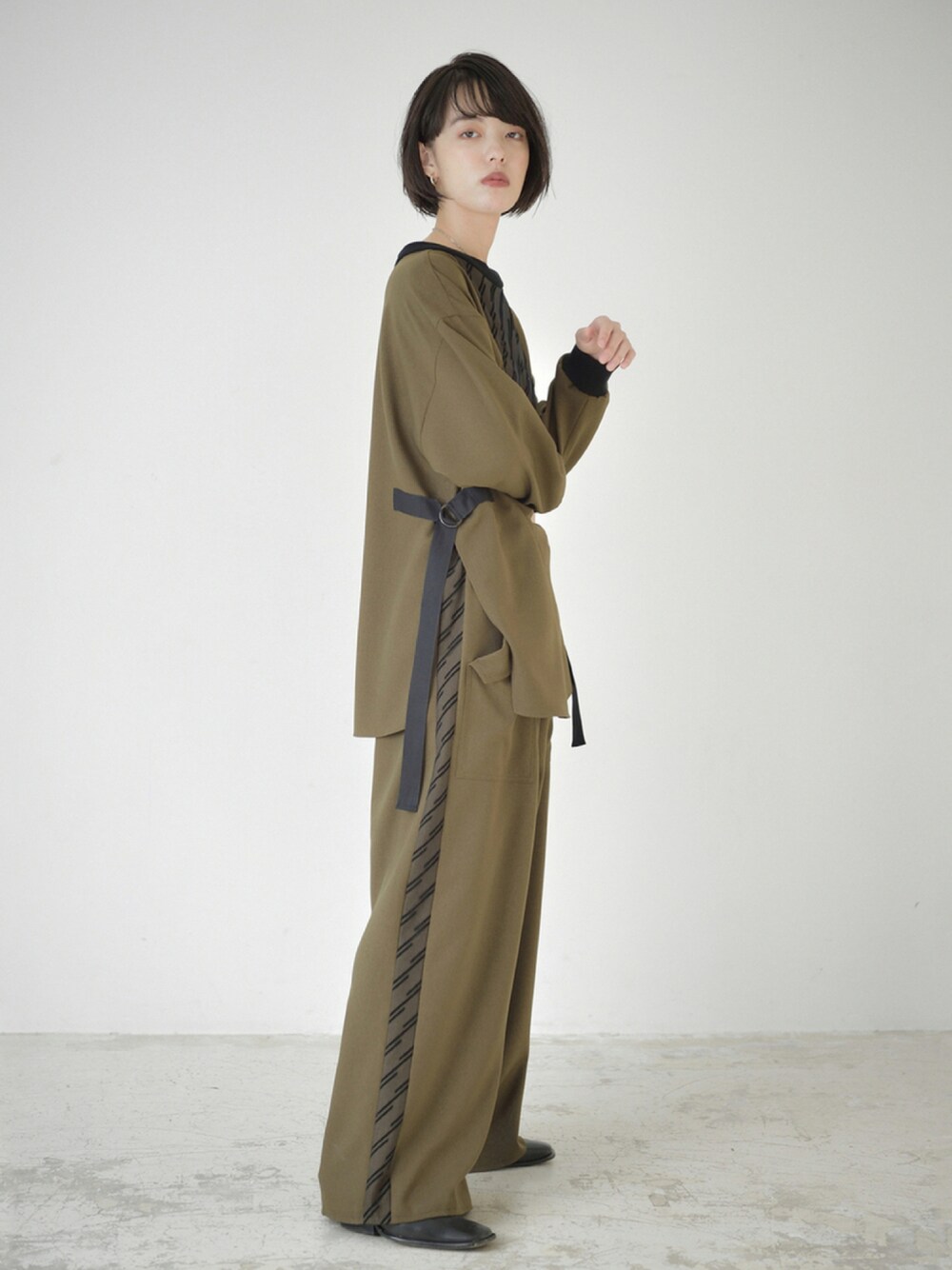 存在感抜群の配色デザインブラウスとラインパンツのリラックスセットアップコーディネート✨ instagram ▶︎melton_sric