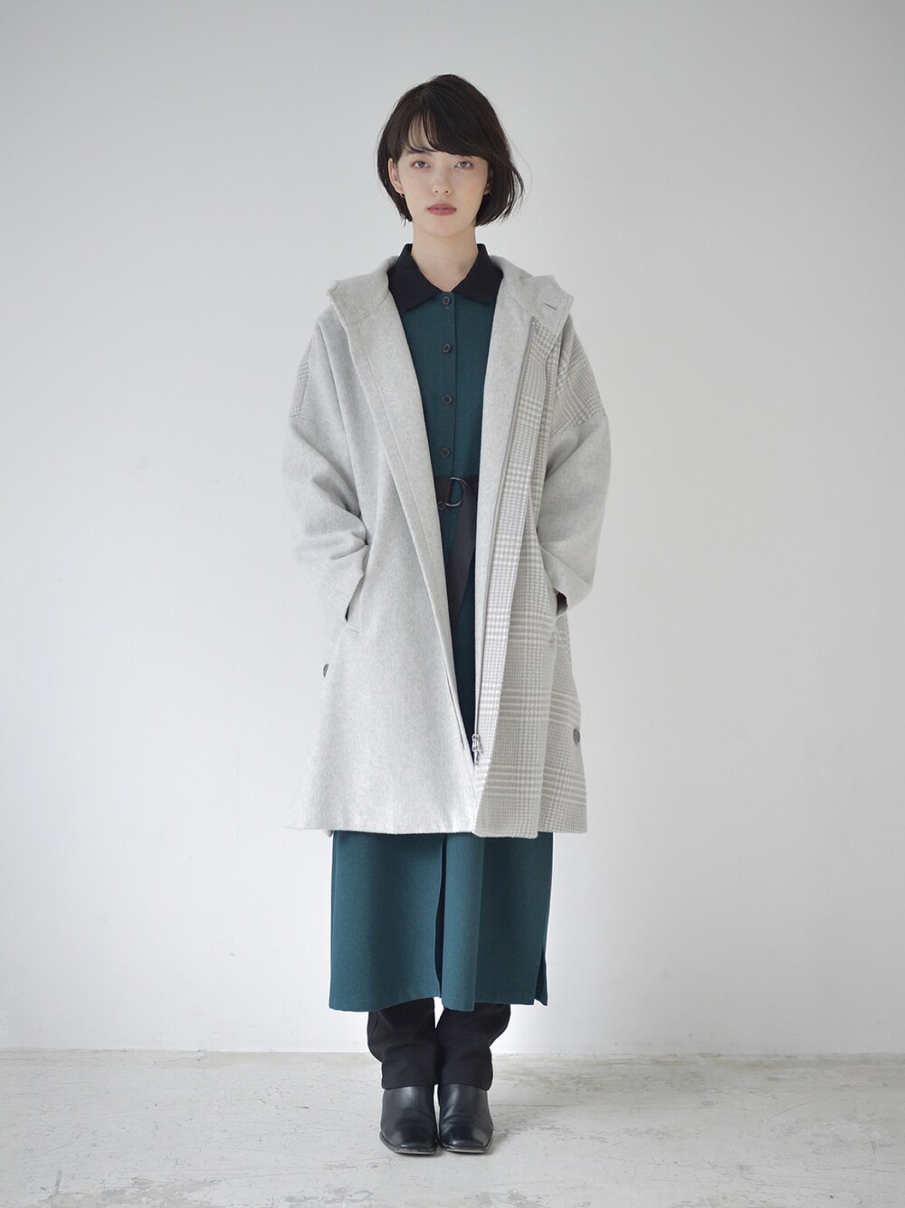 グレンチェック、千鳥柄、無地、3素材の組み合わせが新鮮なフードコート✨ instagram ▶︎ melton_sric