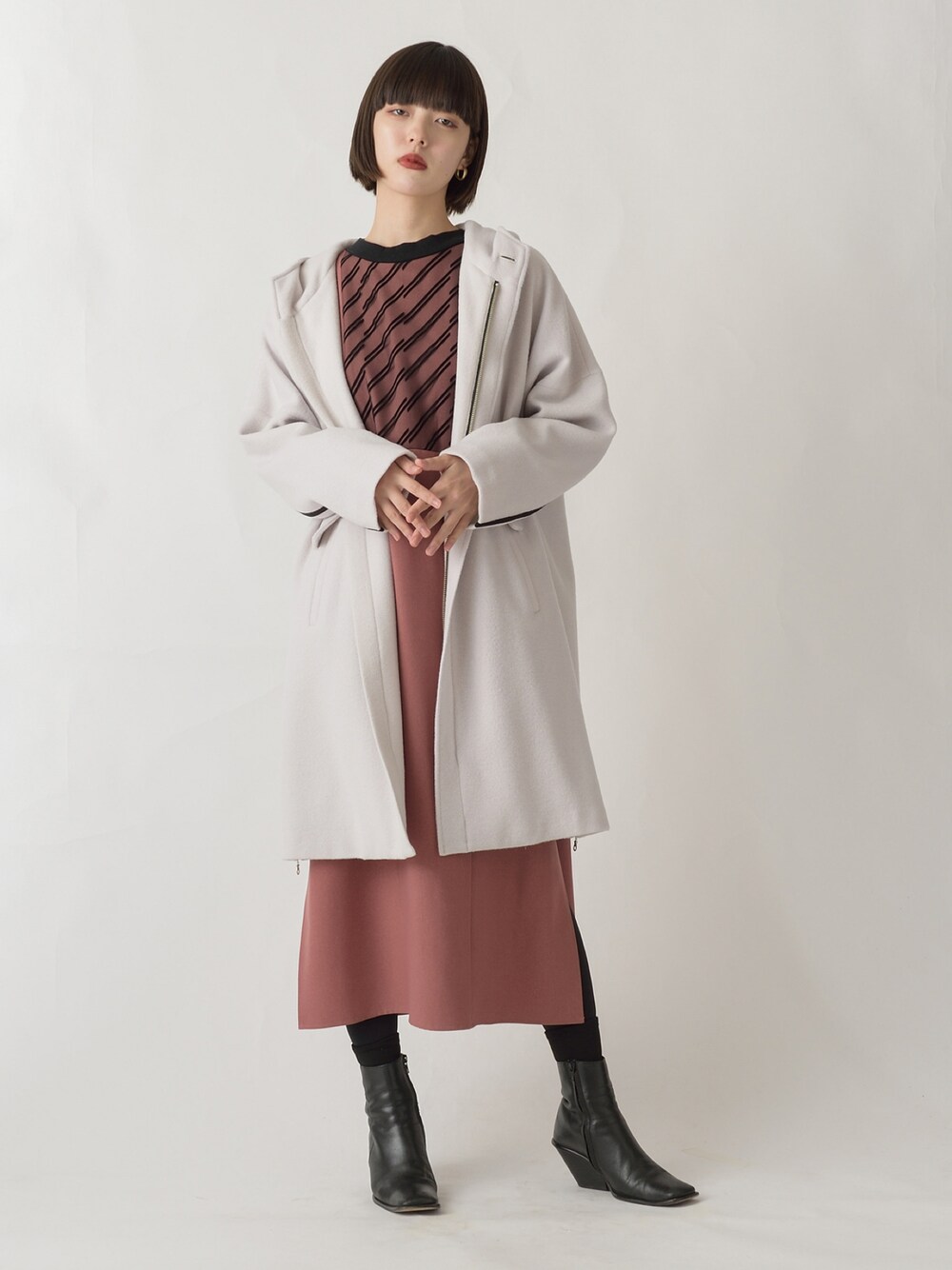 胸元フロッキーが可愛いピックワンピに フードコートをコーディネート✨ instagram ▶︎ melton_sric