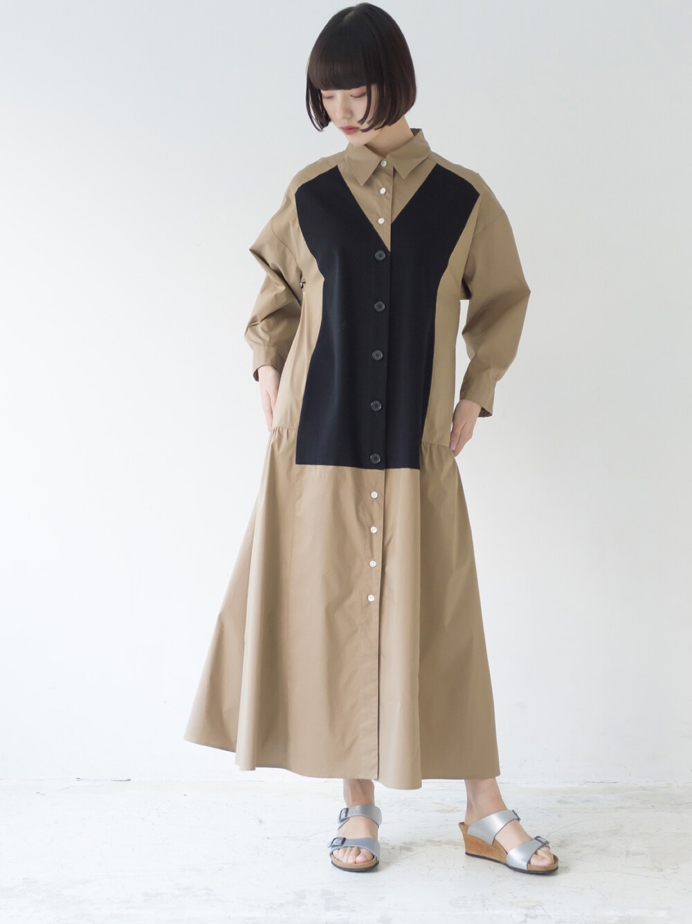 La SRIC officialのシャツワンピース「La SRIC / ブロッキングシャツOP」を使ったコーディネート