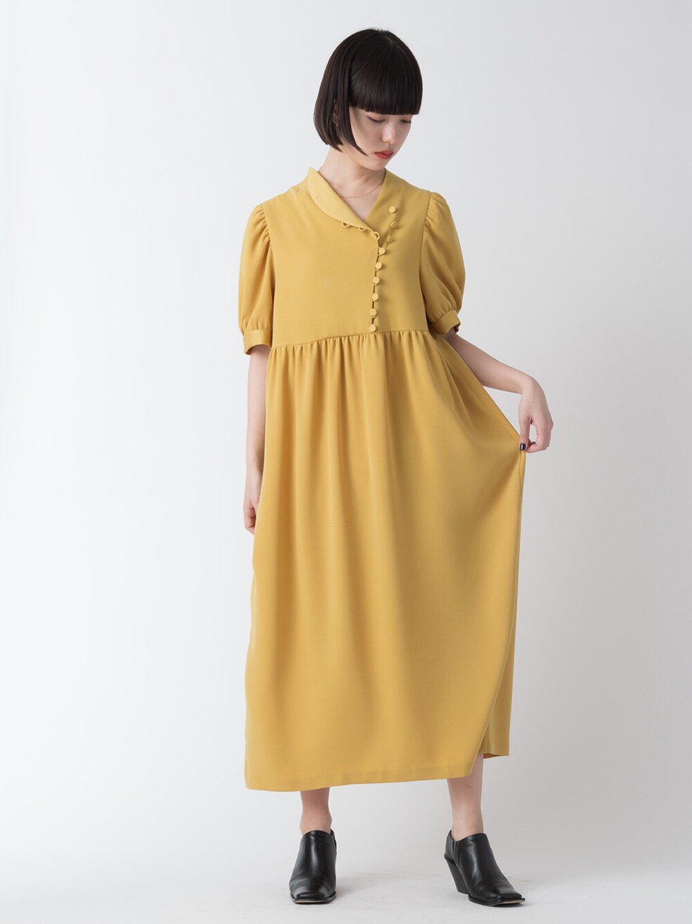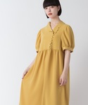パフスリーブと前合わせくるみボタンがクラシックなイメージのフェミニンワンピース✨ instagram ▶︎ melton_sric