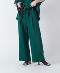 片サイドの大きな変則ハトメカン仕様が印象的なデザインブラウス✨ 同素材パンツとセットアップコーディネート✨ instagram ▶︎ melton_sric