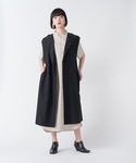 袖フリルワンピースにトレンチコートテイストなロングジレをコーディネート✨ instagram ▶︎ melton_sric