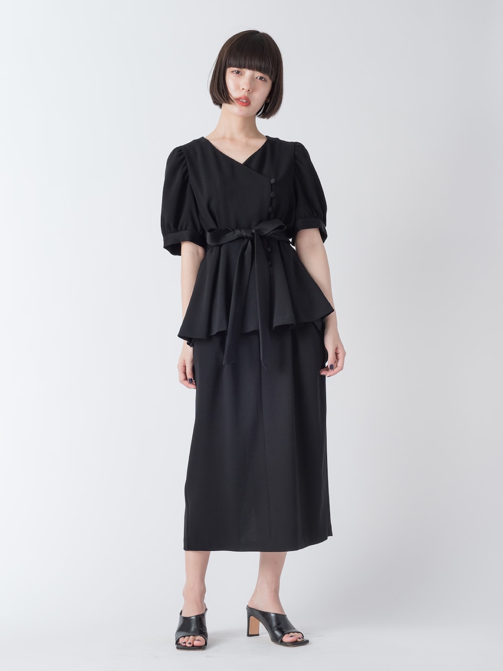 パフスリーブとくるみボタンが可愛いクラシックブラウス✨ クラシックドレススカートとセットアップコーディネート✨ instagram ▶︎ melton_sric