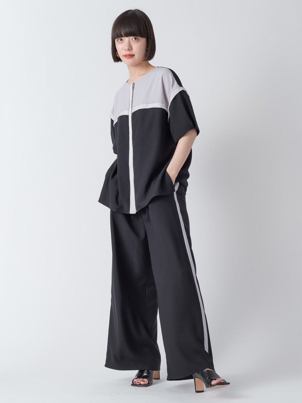 大胆な配色ブラウスとラインパンツ✨ リラックスセットアップコーディネート✨ instagram ▶︎ melton_sric