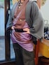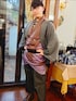 休日の和装 ロックスタイル 着物 灰色の生地を黄櫨染(こうろぜん)の染料で染めた『葡萄染(えびぜん)』のきもの 半襦袢の上から、野袴を穿いてから、着物を重ねて、腰紐だけ締めたら帯の代わりにワイドベルト。裾は尻っぱしょり。 藤木屋で買ったパーカー羽織を羽織って、 クリップタイプの羽織紐を付けたら、サイドゴアブーツ履いて、ハンチングを逆向きに被って完成。 手には数珠ブレスレットをじゃらりと。
