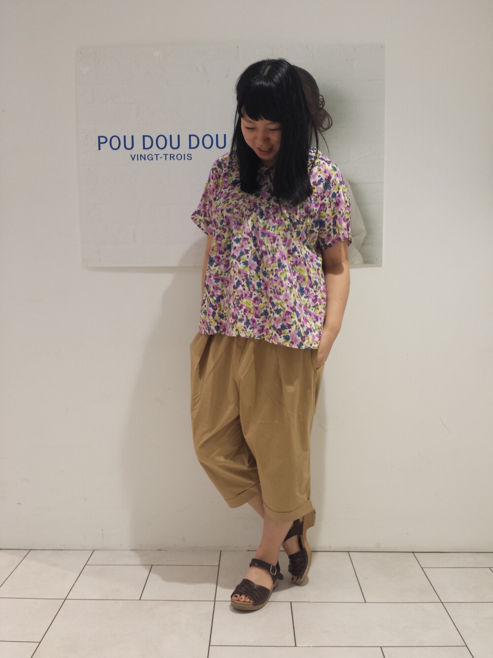 お気に入りの半端丈パンツでコーディネート。 キレイなコットン素材なので、ゆるシルエットですがラフになりすぎません。 水彩画タッチの花柄が目を引くブラウスで華やかに。
