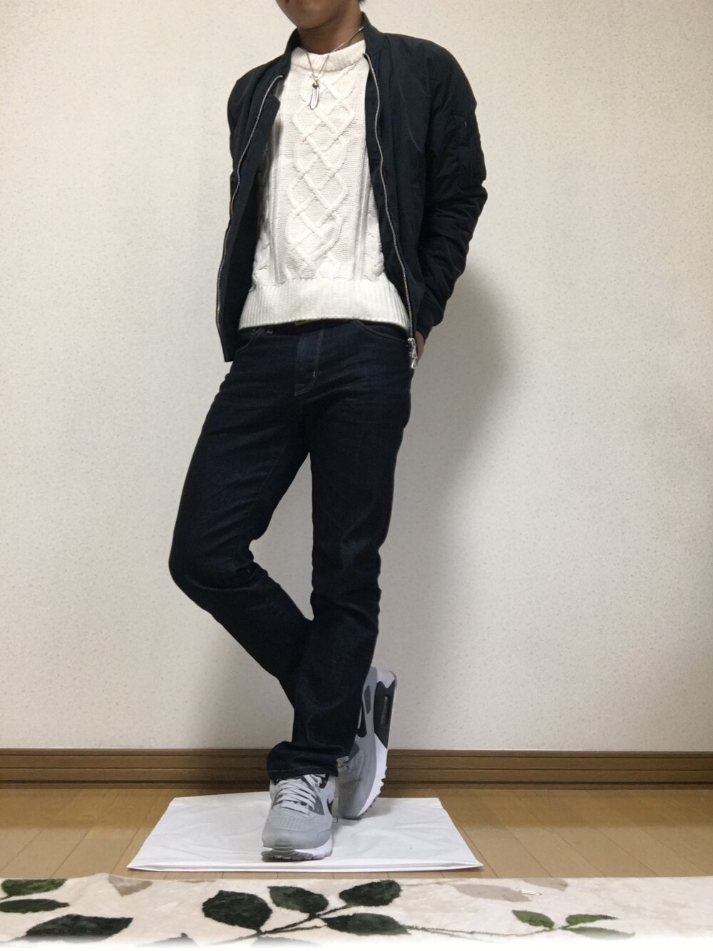 今年も人気のMA1を着てみました。 MA1にニットは相性がいい