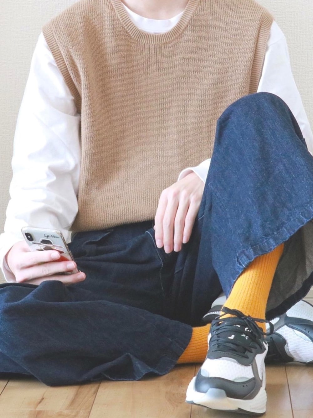 閲覧いただきありがとうございます! ニットベストとワイドパンツを 組み合わせてこーでを組んでみました!🐕 くつ下のさし色もかわいい、、 Instagram ➯➱➩ @___ike.cn___