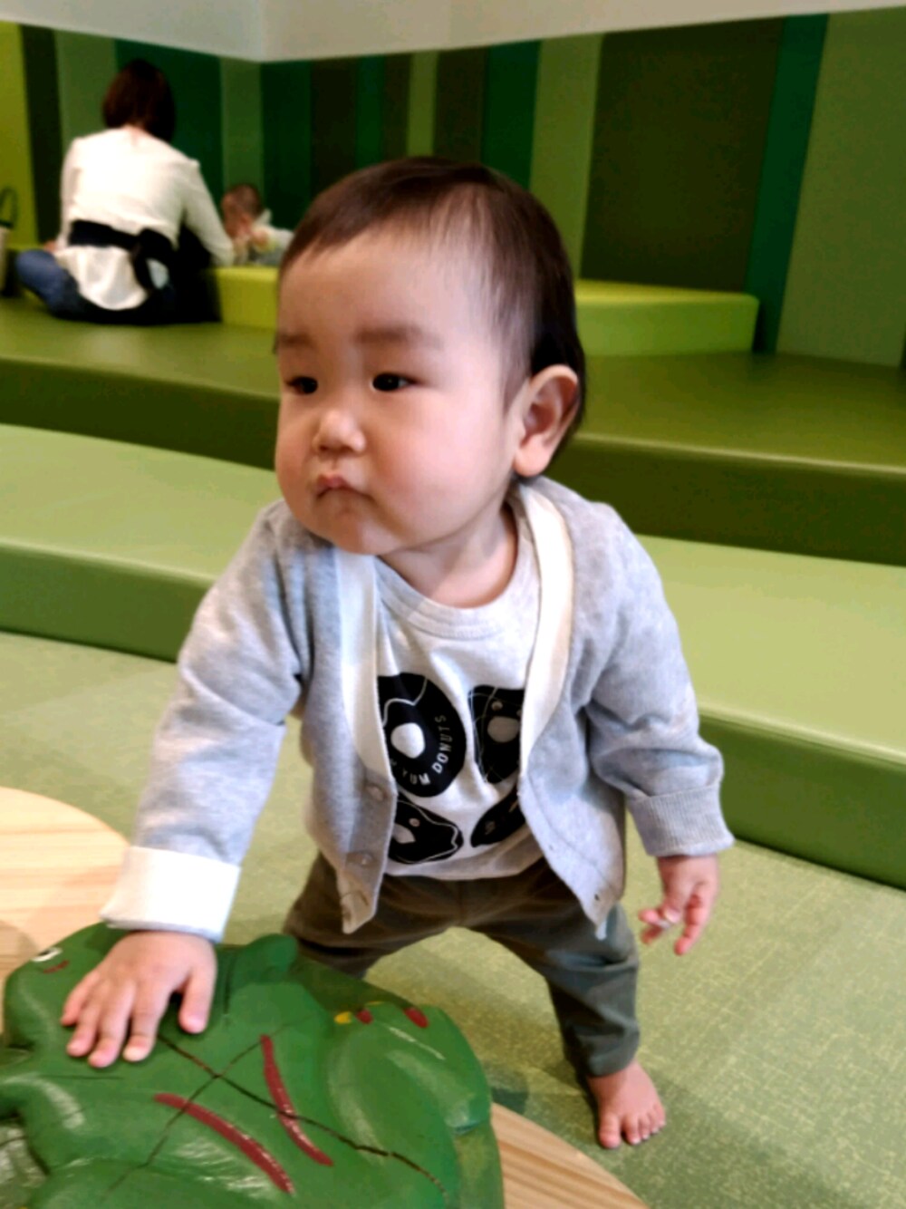 今年初の半袖☆ カ-ディガンを羽織って👶