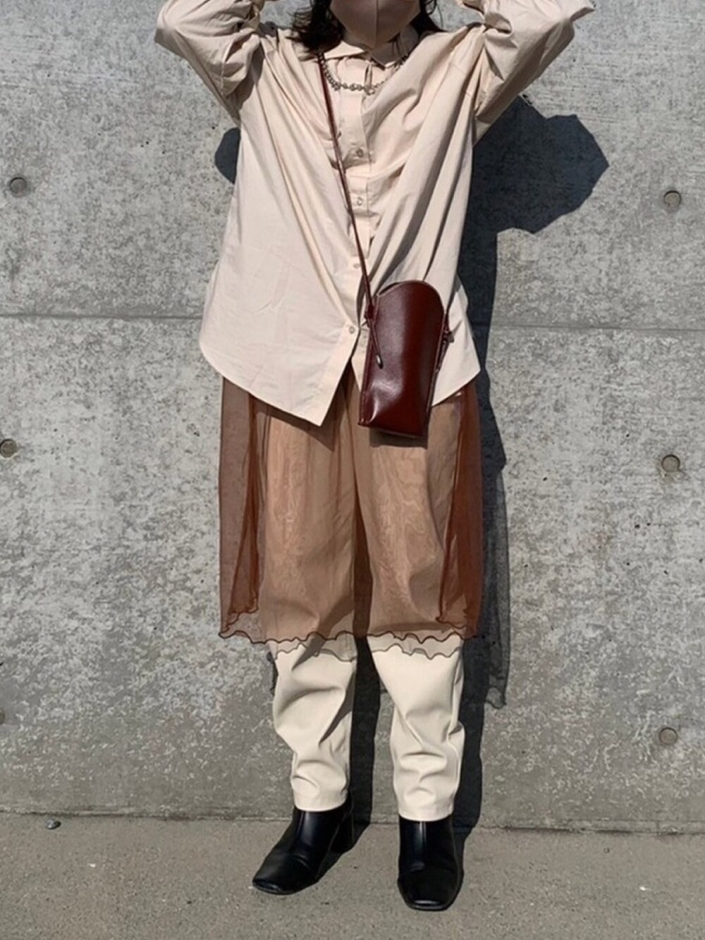 アイボリー×ブラウンの ワントーンコーデ。