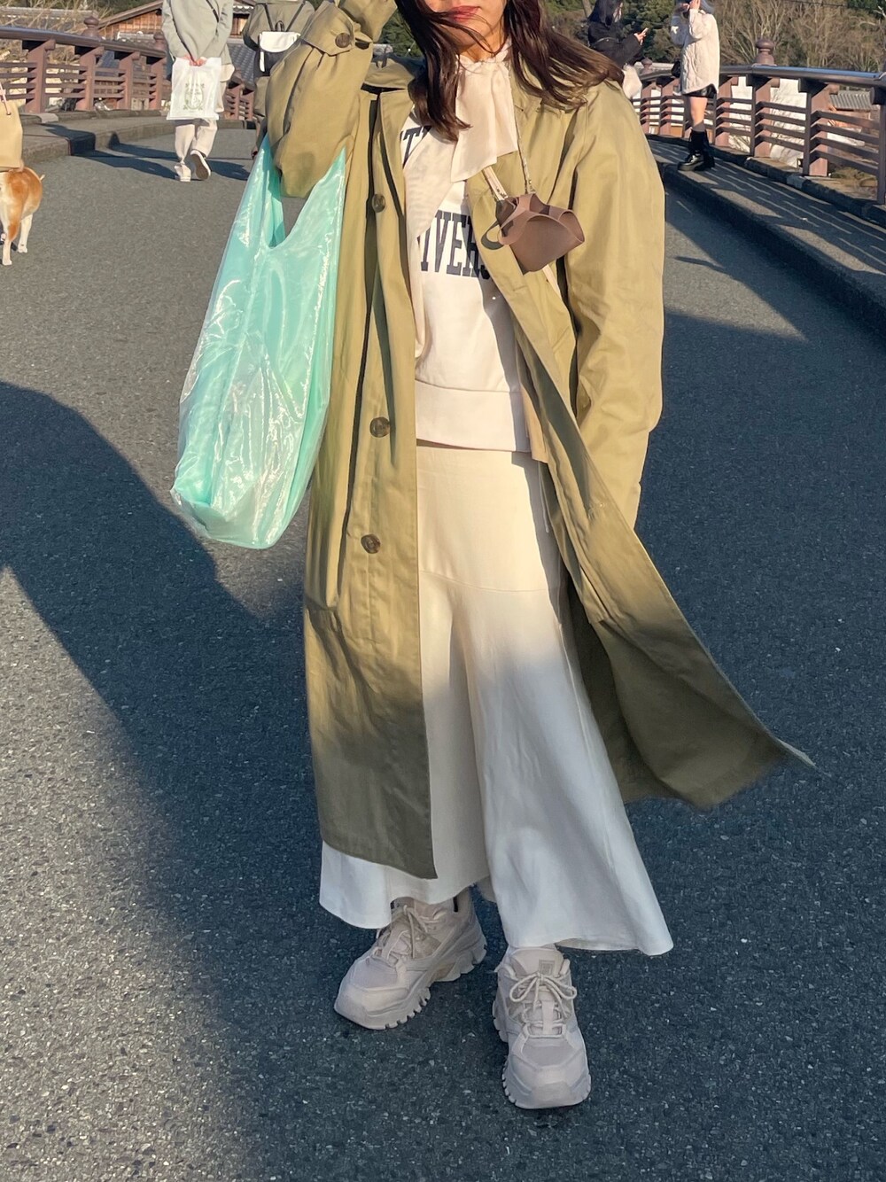 お伊勢さん行った時の。 スウェットとスニーカーで カジュアルなりすぎないように キレイめカジュアルにしました🦦💫