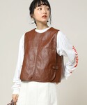 いけちゃのベスト「フェイクレザー2WAYベスト」を使ったコーディネート