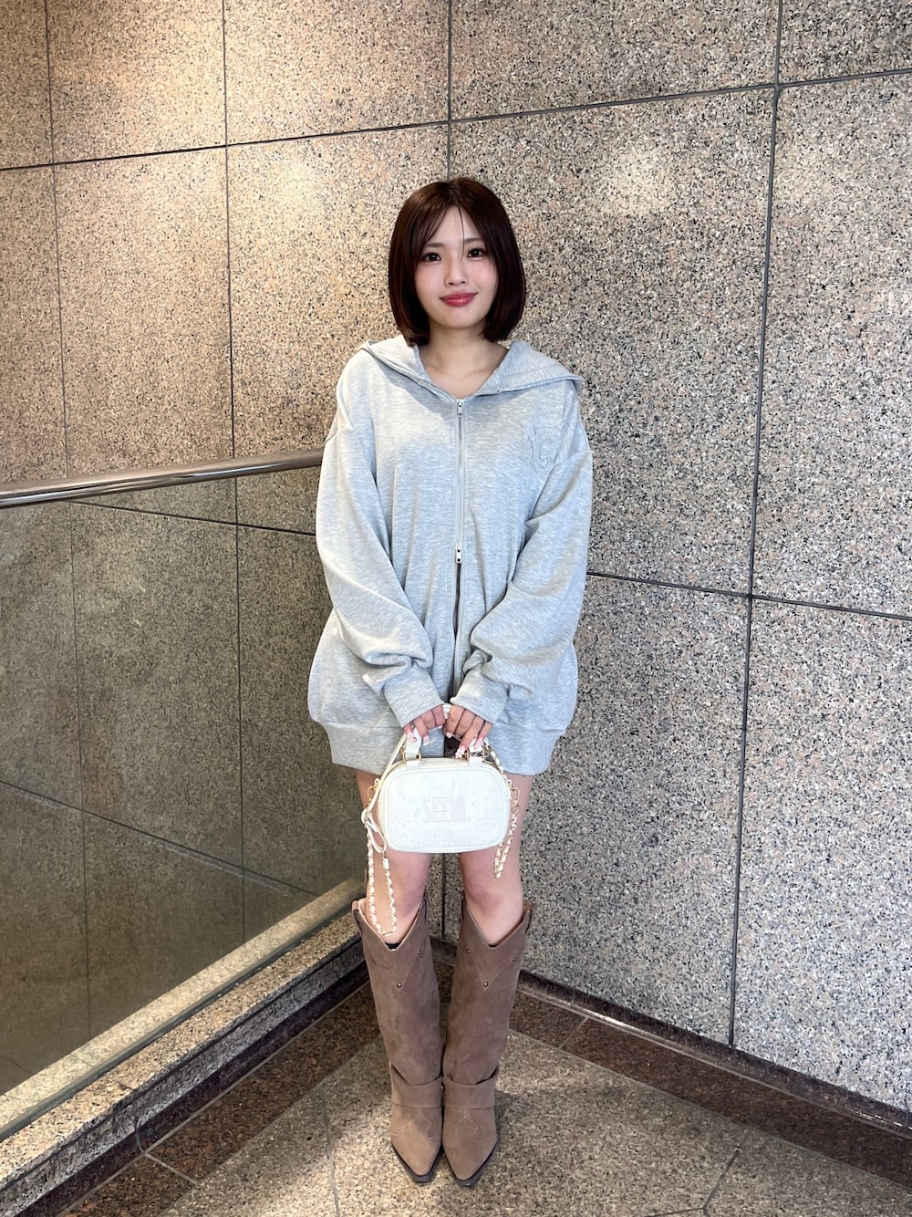 まいか(one after another NICE CLAUP)のパーカー「ゆるたぽシルエット/オーバーサイズグリッターパーカー」を使ったコーディネート