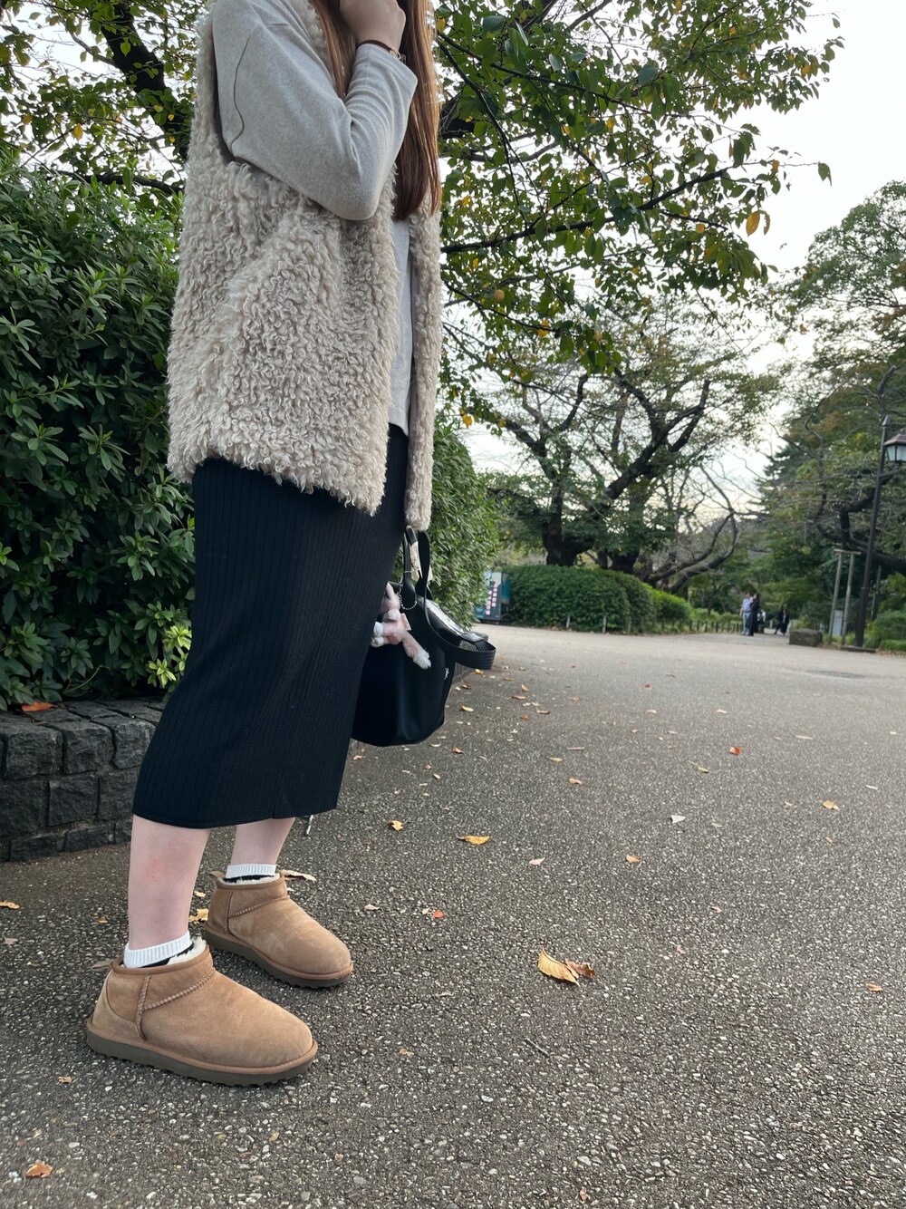 長袖の首元ゆるゆるのタートルネックでは絶対寒いので、もふもふのシャギーニットベストを羽織ったらちょうどよかった💛