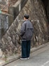 グレーのナイロンブルゾンに、 チャンピオンスウェットイージースラックスで。