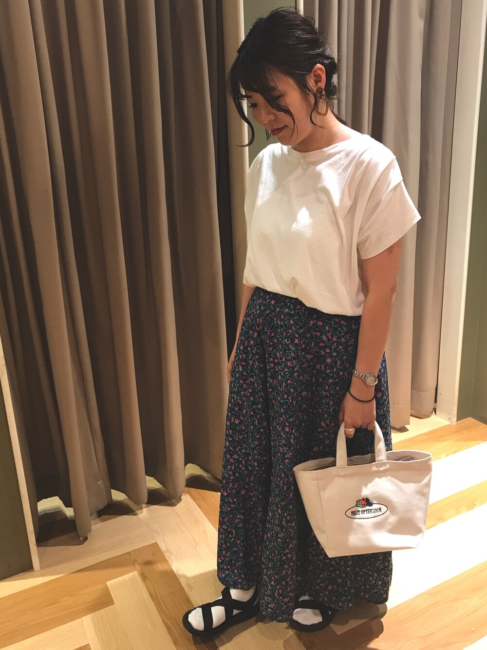 moemi(Green Parks)のTシャツ/カットソー「・SUGAR SPOON ショルダータックワイドTシャツ」を使ったコーディネート