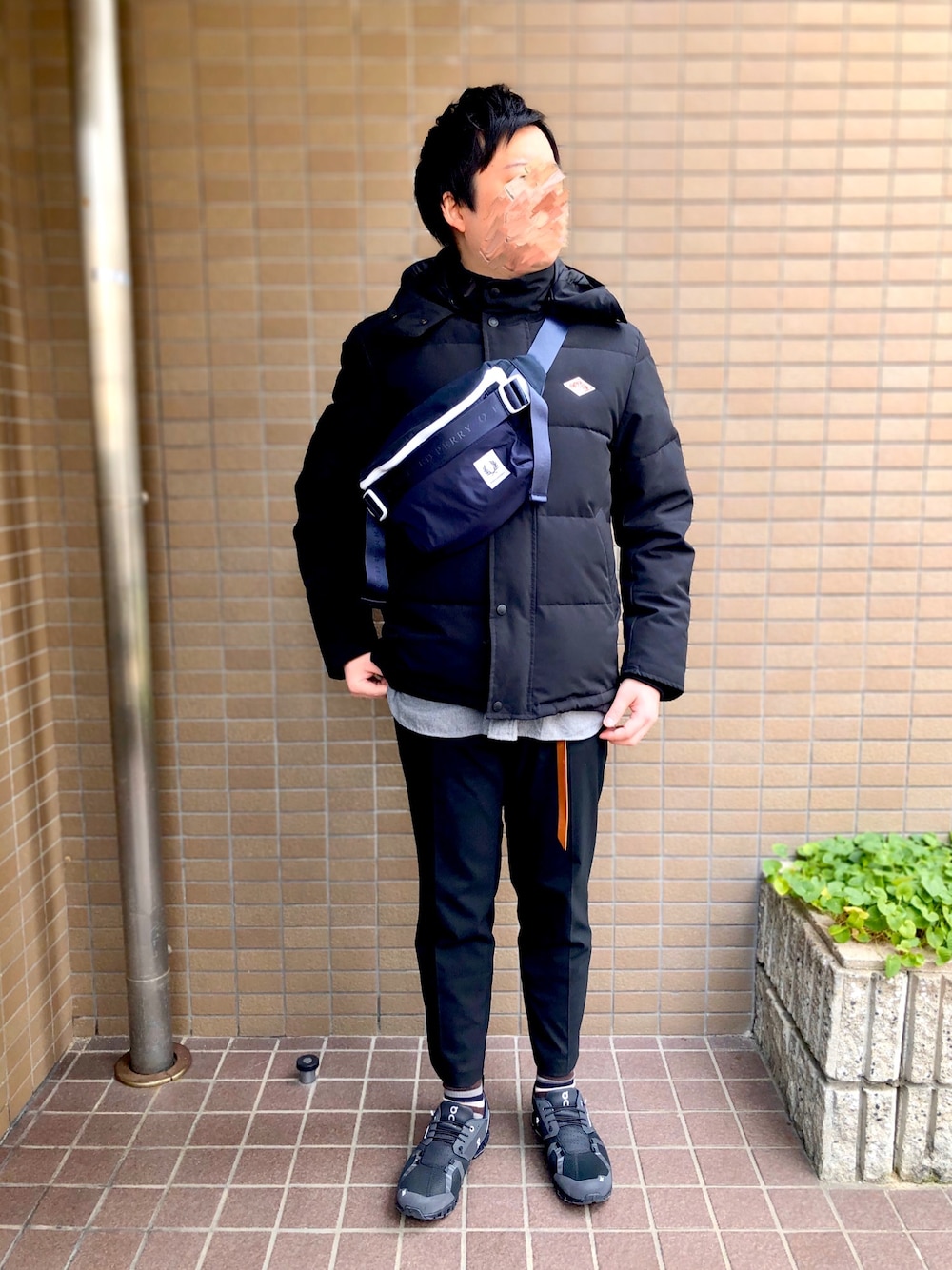 撮り方ガラッと変えました。 今まで室内だったので靴が...笑 たまには黒×グレー。 でもFRED PERRYの主張強め。 OnのCloud Waterproofがめちゃくちゃ お気に入り。