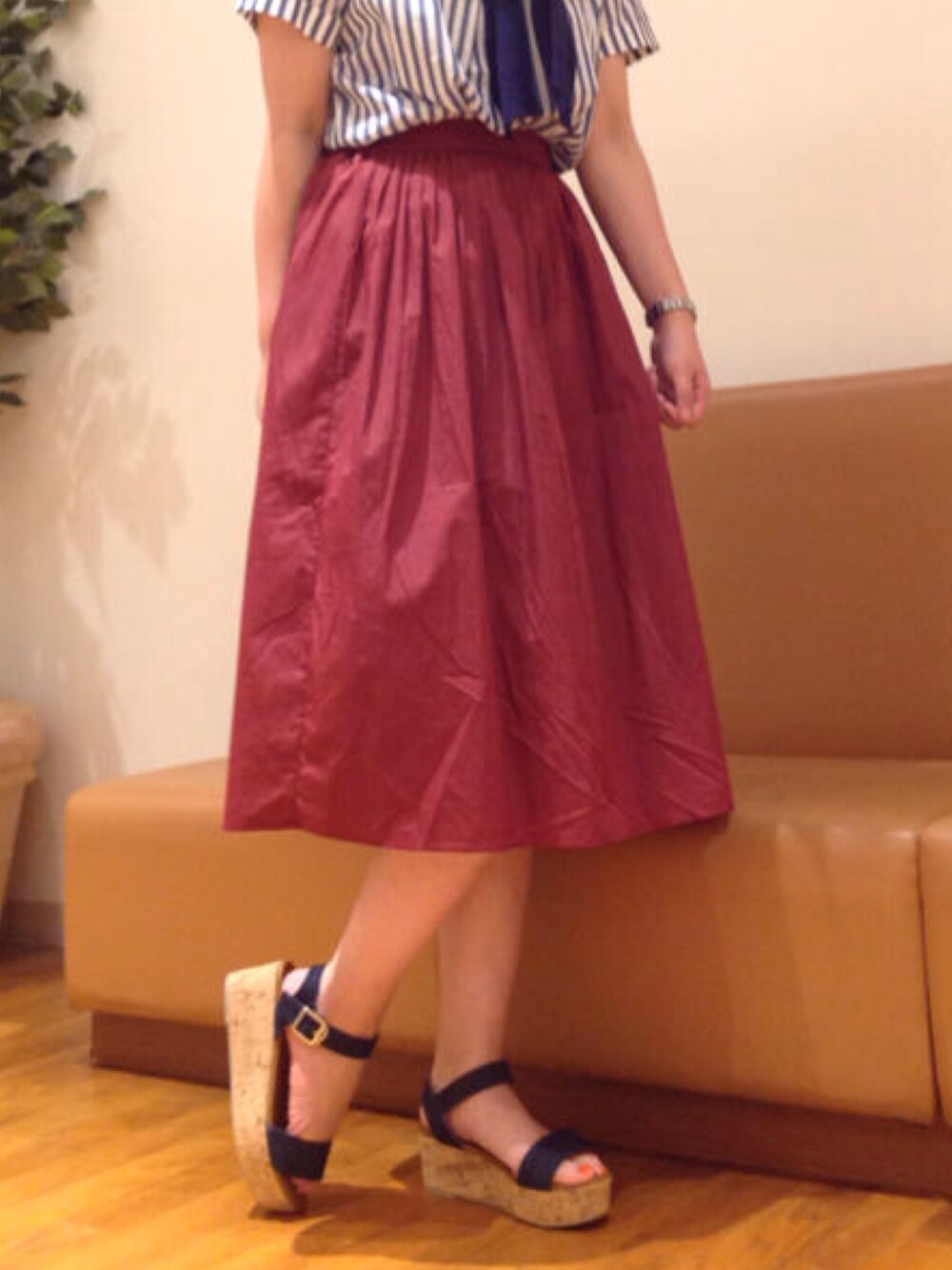 秋物スカート♪ 個人的にはボルドーカラーが 好きなので、こちらを載せました♪ ゴムなので締め付け感なく オススメです。