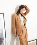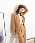 いけいのノーカラージャケット「イージーケア ダブルクロスラペルレスジャケット(セットアップ可)」を使ったコーディネート