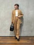 いけいのノーカラージャケット「イージーケア ダブルクロスラペルレスジャケット(セットアップ可)」を使ったコーディネート