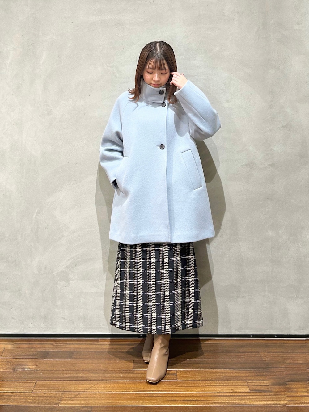 いけいのステンカラーコート「MANTECO BIBYE スタンドカラーコート」を使ったコーディネート