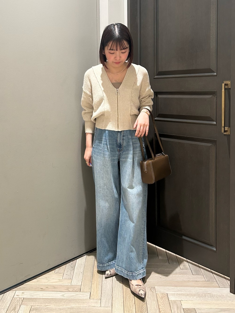 いけいのカーディガン/ボレロ「リネン混テープヤーンZIPカーディガン」を使ったコーディネート