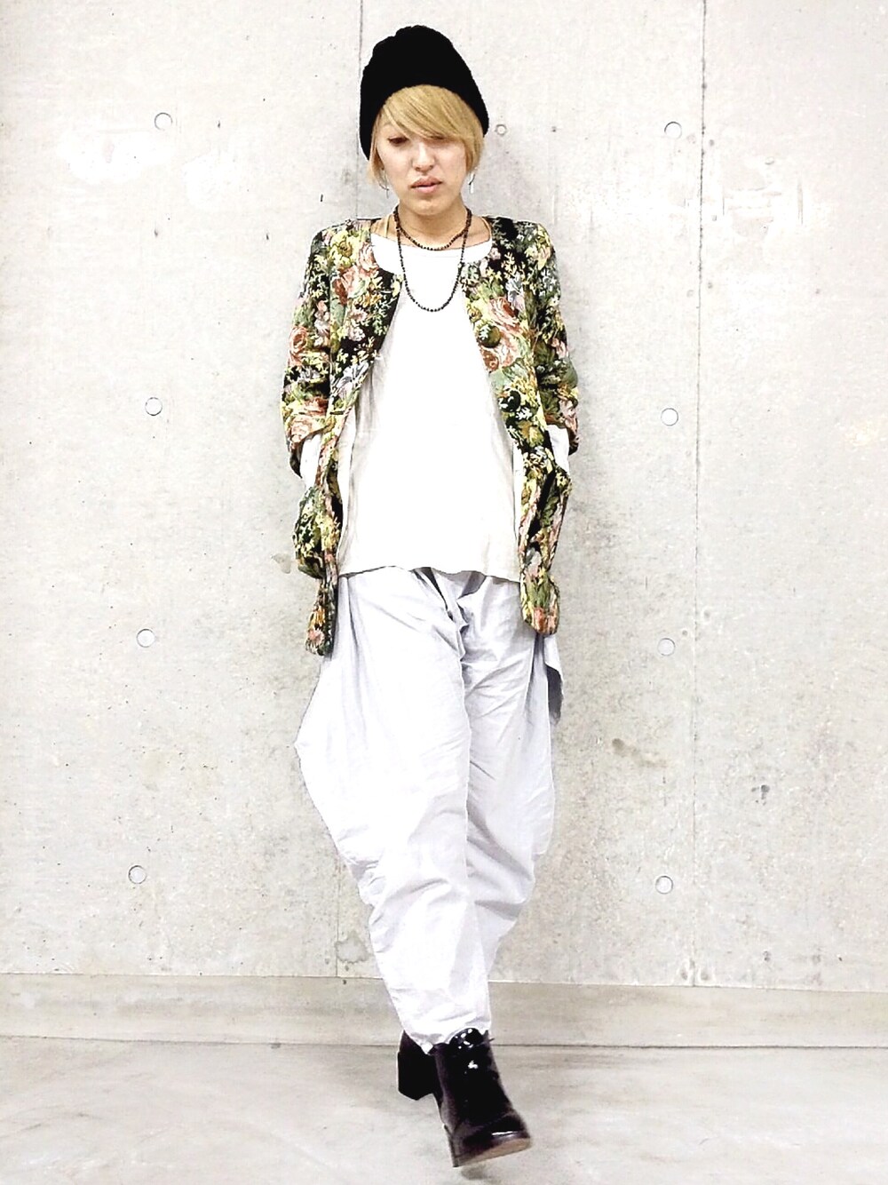 DJ KITKUTのその他パンツ「ニューヨークのBrooklyn Fleaで購入したアメリカのデザイナーズブランドです。サルエルパンツみたいな不思議な形でお気に入り。生地はコットンでさらっとしてます。」を使ったコーディネート