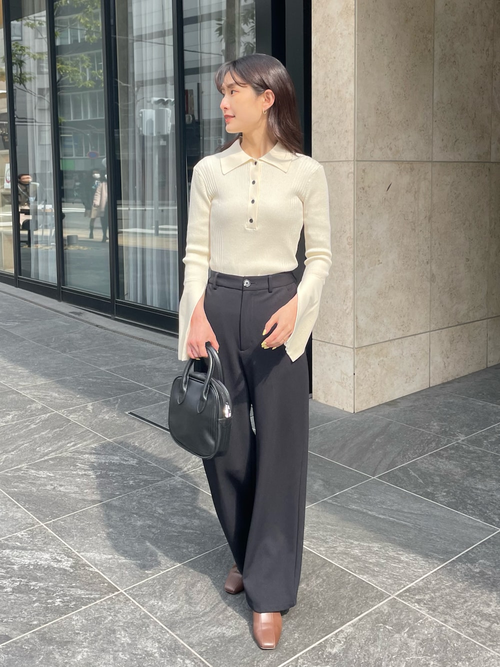 このポロニットは袖スリットで女性らしく着られるのでお気に入り🫶