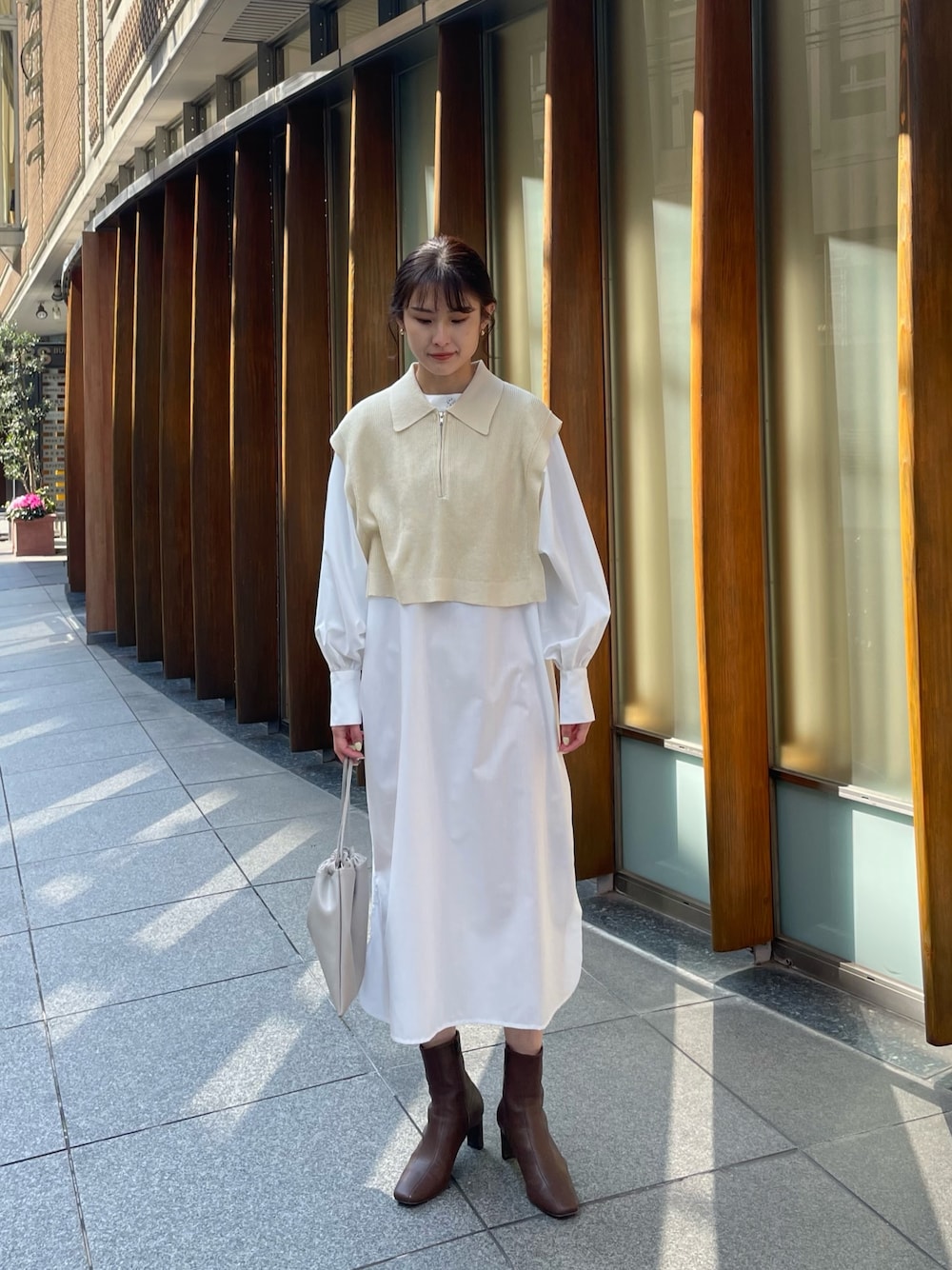 ベストとシャツワンピの組み合わせかわいい🫶ハーフジップがアクセントに✨