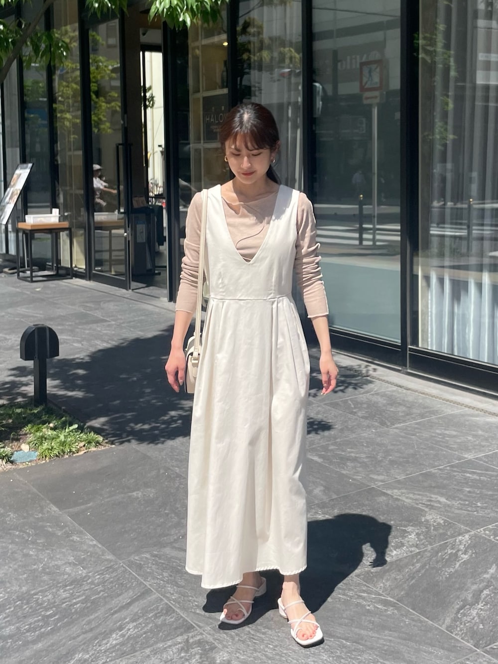 saki(cheriella)のジャンパースカート「 【HER CLOSET】WEB限定チノ深Vフレアワンピース WEB LIMITED CHINO DEEP V-FLARE DRESS」を使ったコーディネート