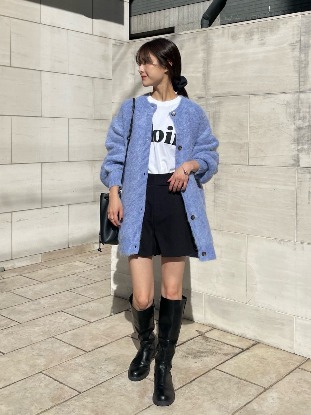 トレンドのシャギーカーデ💙 カジュアルにロンT合わせしました✨