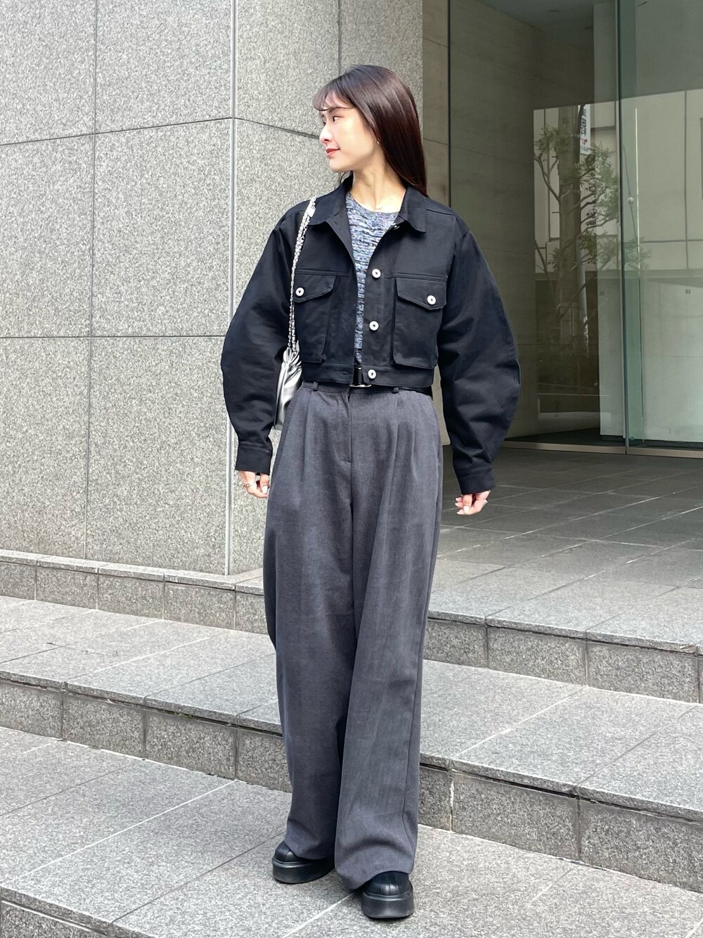 モノトーンコーデ!ショート丈のデニムジャケットはバランスがとりやすくスタイルアップします🖤