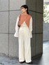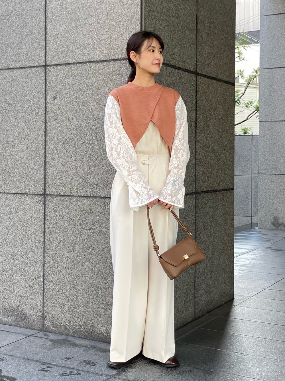 袖のレースがポイントのトップス✨ ガーリーなアイテムですがパンツで合わせるとカジュアルに着られます!
