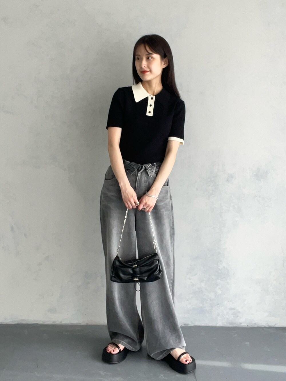 1枚で決まるポロニット🖤同トーンでのデニム合わせもおすすめです!
