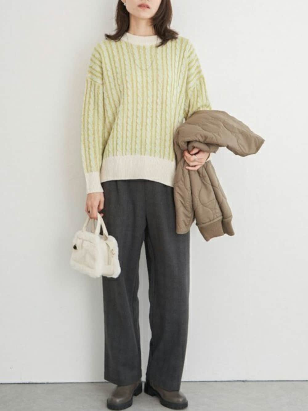 ikka HEAD OFFICE01(ikka LOUNGE HEAD OFFICE)のニット/セーター「ケーブルニットプルオーバー」を使ったコーディネート