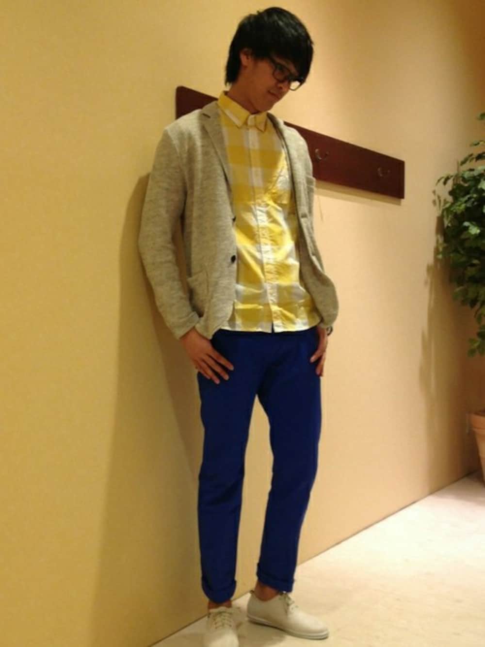 本日ご紹介したいのは、涼しげな素材感が魅力のニットテーラードジャケット。 着心地がよく動きやすいため、春先からの強い味方になってくれるアイテムです♪ コーディネートはイエローのチェックシャツとロイヤルブルーのパンツで春らしく仕上げました。