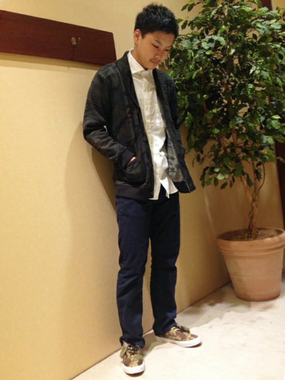 カモフラ柄が印象的なカーディガンは、裏フリースのボンディング仕様でアウターライクに着まわせる暖かさが魅力。 ホワイト×ネイビーの定番の合わせにも絶妙なアクセントを効かせてくれます。