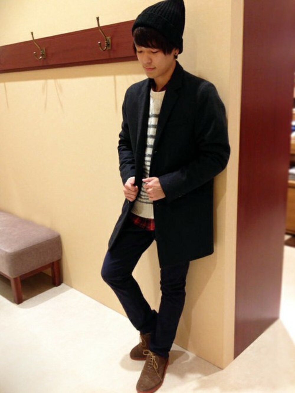 ikka HEAD OFFICE Men's(ikka HEAD OFFICE)のチェスターコート「メルトン中綿チェスターコート 」を使ったコーディネート